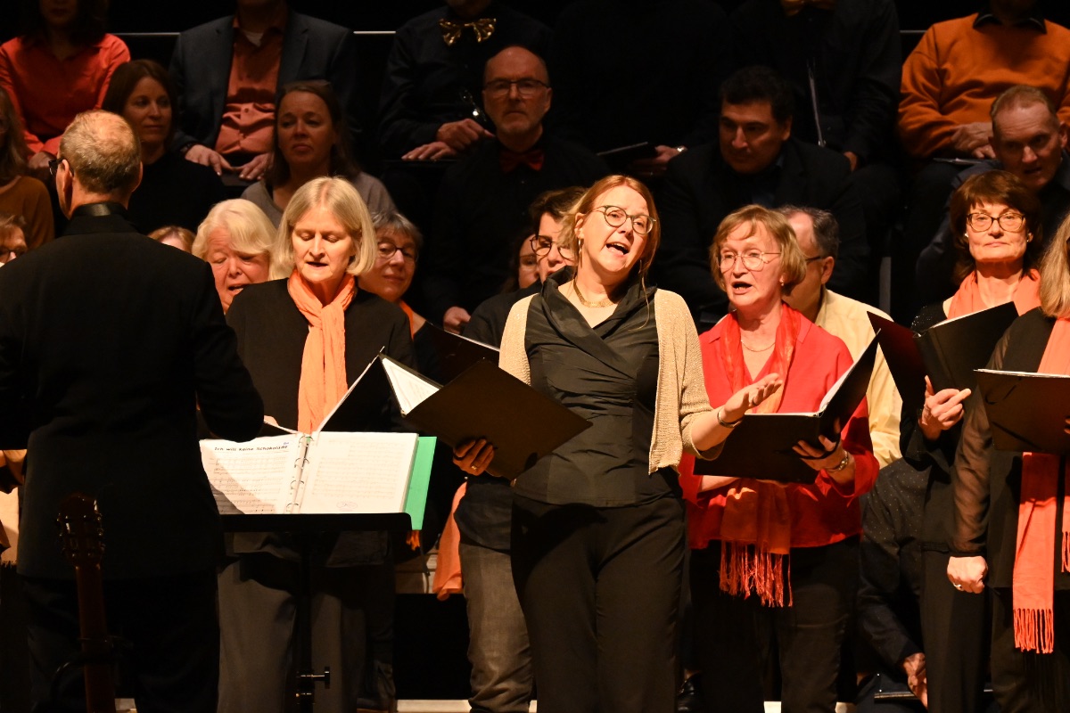 Die Liedauswahl nahm das Publikum mit auf eine musikalische Reise durch die Zeit, von der Gründung des Chores im Jahre 1900 bis in die Gegenwart. Mit „Brot und Rosen“ (1912) beispielsweise, einem Lied aus der Arbeiterbewegung, ging es zurück zu den Wurzeln der Sängervereinigung, die aus diesem Milieu hervorgegangen war.